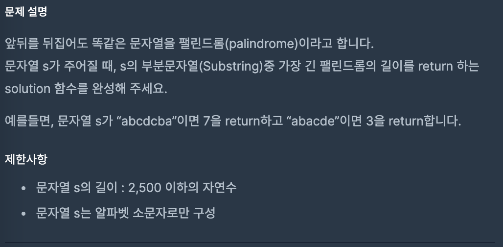 코딩테스트 연습 - 가장 긴 팰린드롬