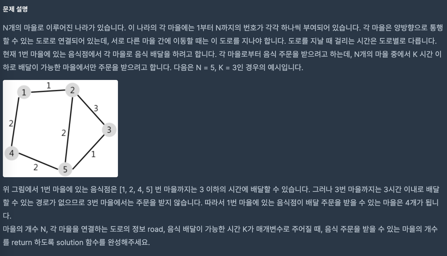 코딩테스트 연습 - 배달