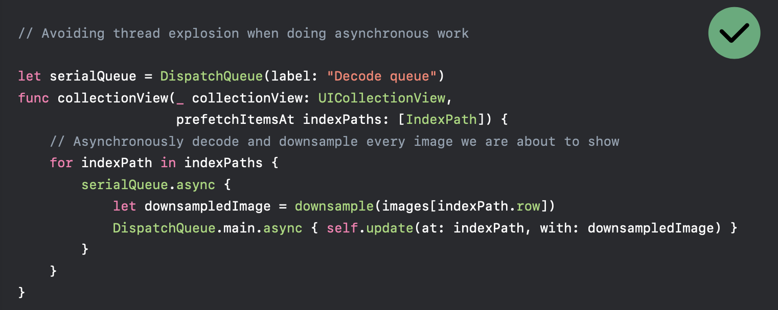 이러한 경우엔 DispatchQueue를 생성해서 한 곳에서만 처리하도록 하는게 좋은 방식이라고 하네요