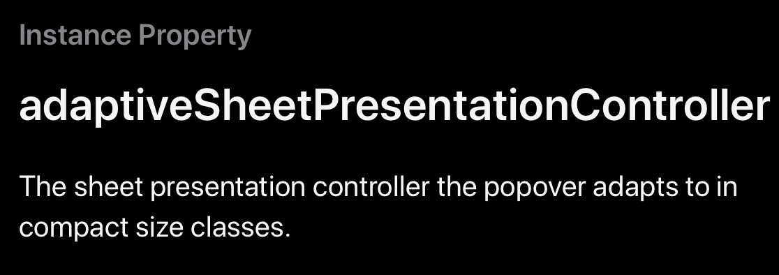 컴팩트한 크기클래스에 적응할 시트를 반환해줘요반환형이 UISheetPresentationController라서 위의 파라미터를 모두 사용할 수 있구요