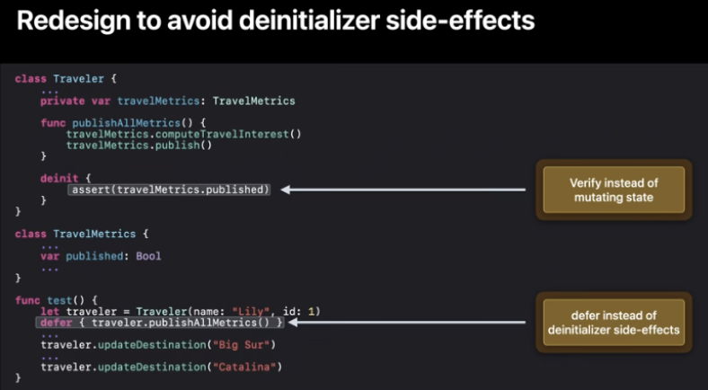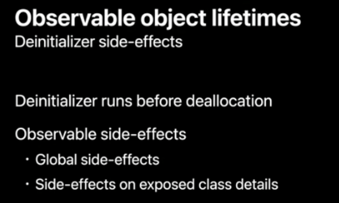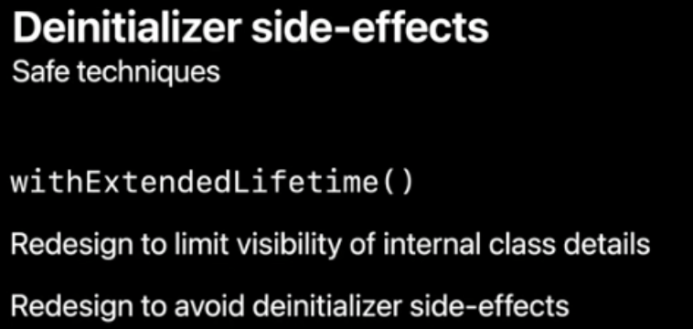 deinit side effect를 제거함으로써 모든 잠재적인 객체수명 버그를 제거할 수 있죠