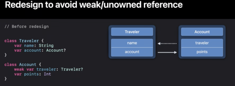 weak, unowned참조를 피하도록 설계하는 것이죠