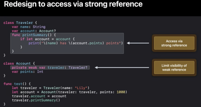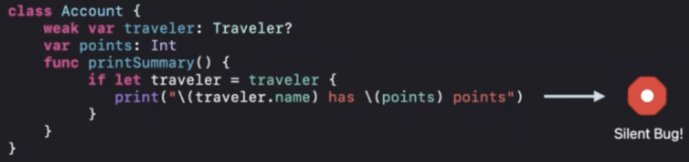 이제 강한참조를 통해 printSummary()를 호출하여 잠재적인 버그를 제거할 수밖에 없죠