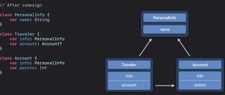 Traveler클래스와 Account클래스는 모두 PersonalInfo클래스를 참조할 수 있으며 순환을 피할 수 있게돼요