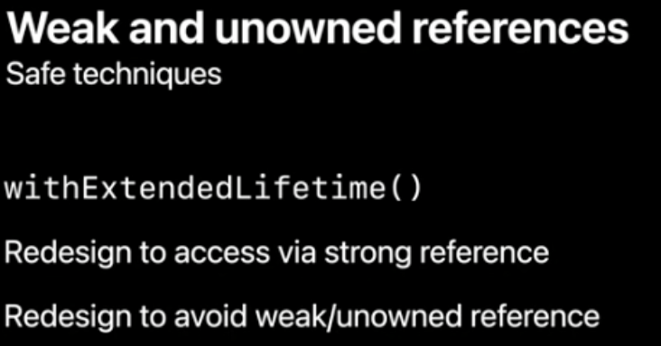 이 방법을 사용하면 weak가 버그를 일으킬 가능성이 있을 때마다 withExtendedLifetime를 사용해야하고