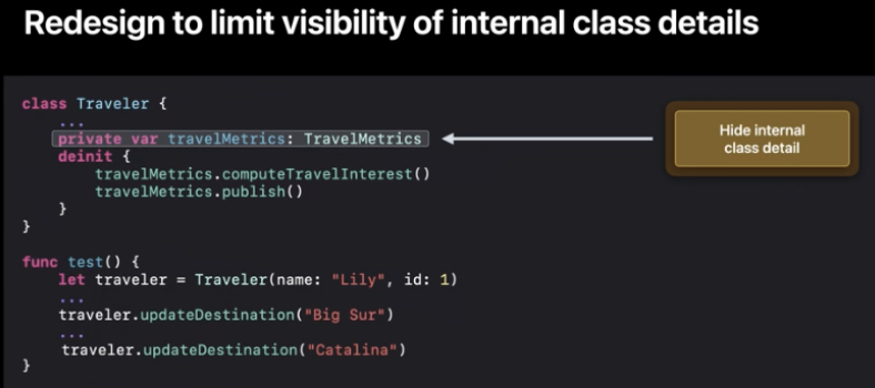 위의 코드에서 TravelMetrics는 외부접근으로부터 숨겼고 private처리 돼있어요