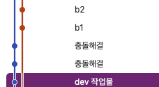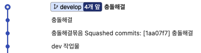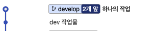 "dev작업물"이 시간상 가장 최신의 커밋내역인데