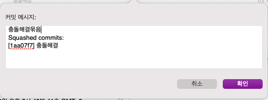 (현재 클릭된 아래의 커밋과 합쳐집니다)