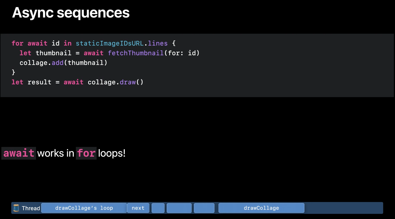 async sequence를 반복하는 루프를 사용할 수 있습니다.
