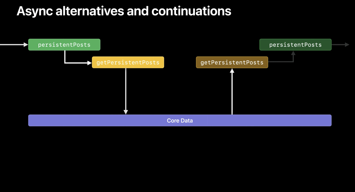 스위프트 컴파일러는 자동으로 Objective-C에서 가져온 completion handler코드를 살펴보고 비동기식 대안을 제공합니다.