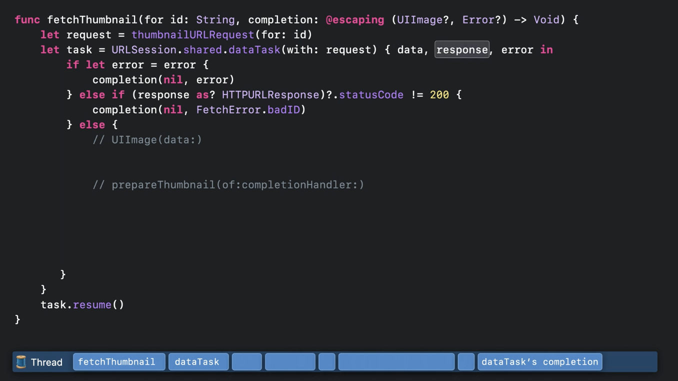 그런다음 fetchThumbnail이 반환되고 스레드는 자유롭게 다른 작업을 할 수 있습니다.