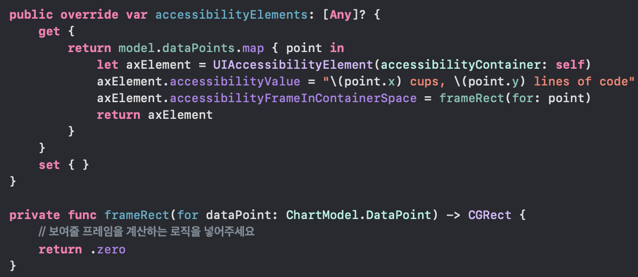 마지막으로 각 데이터 지점에 대한 accessibilityElements을 제공해야합니다.