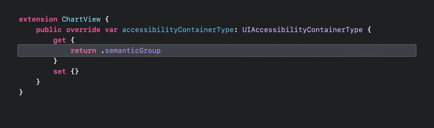 차트를 컨테이너로 만드려면 accessibilityContainerType 재정의 해야합니다.