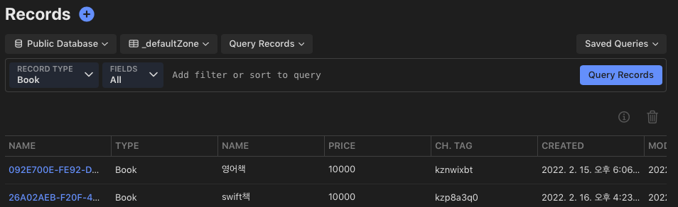 CKQuery로 Book 레코드타입을 넣어주고
