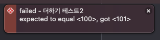 XCTAssertEqual(given, 100, "더하기 테스트3")
