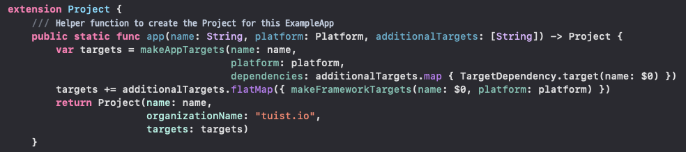 Xcode의 설정이나 폴더들의 구조를 Project.swift파일에 정의하고 그 내용을 토대로 프로젝트를 구성해줘요