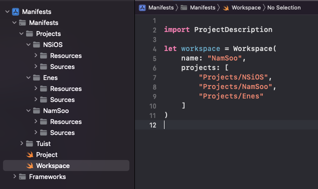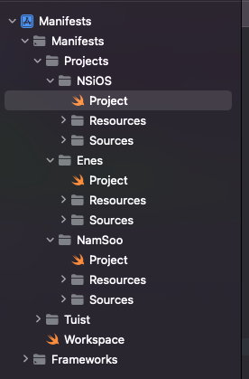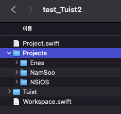 지금은 test_Tuist2에서 NSiOS프로젝트가 바로 보이지만 폴더를 또 생성해서