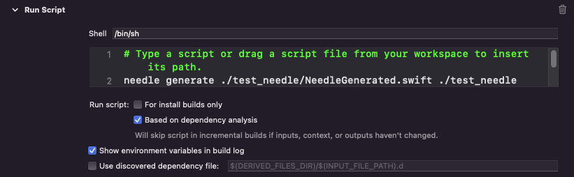 이렇게하면 파인더에 NeedleGenerated.swift 가생성되는걸 볼 수 있고