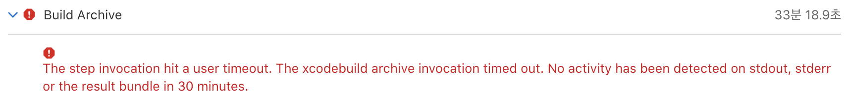 Xcode Cloud는 30분동안 아무 실행이 없으면 time out에러를 내줘요