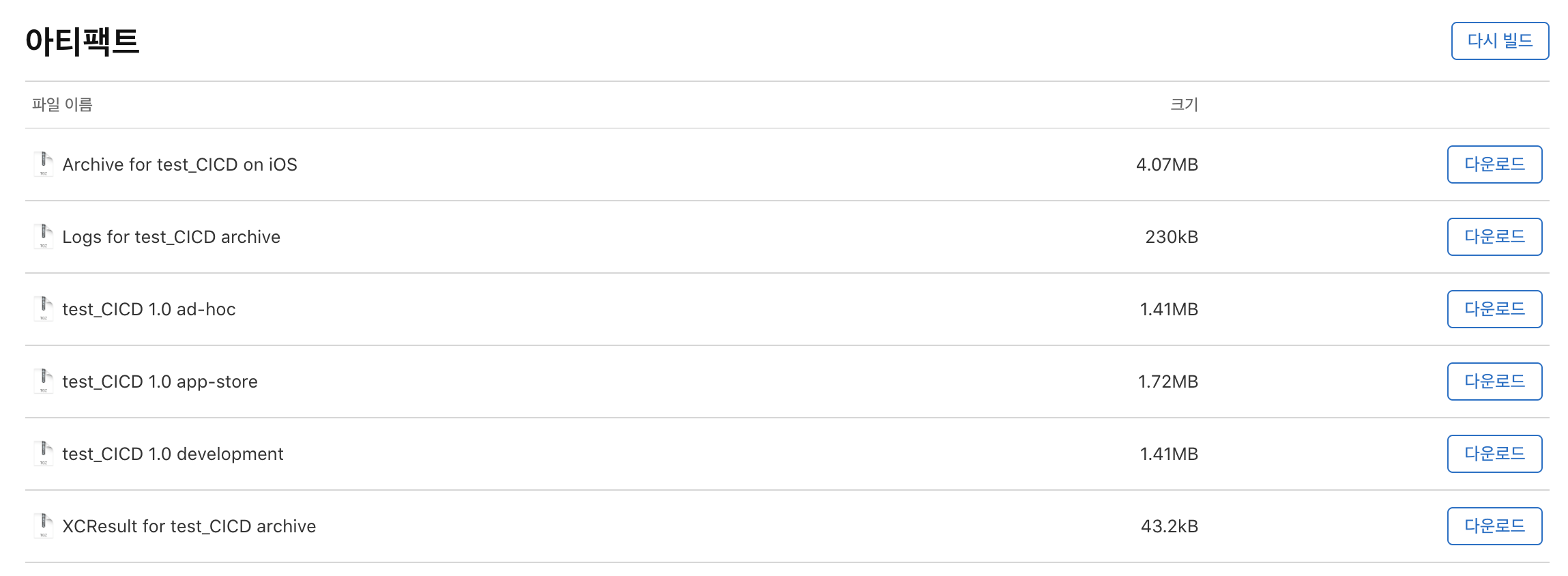 xcodebuild 하기 전인