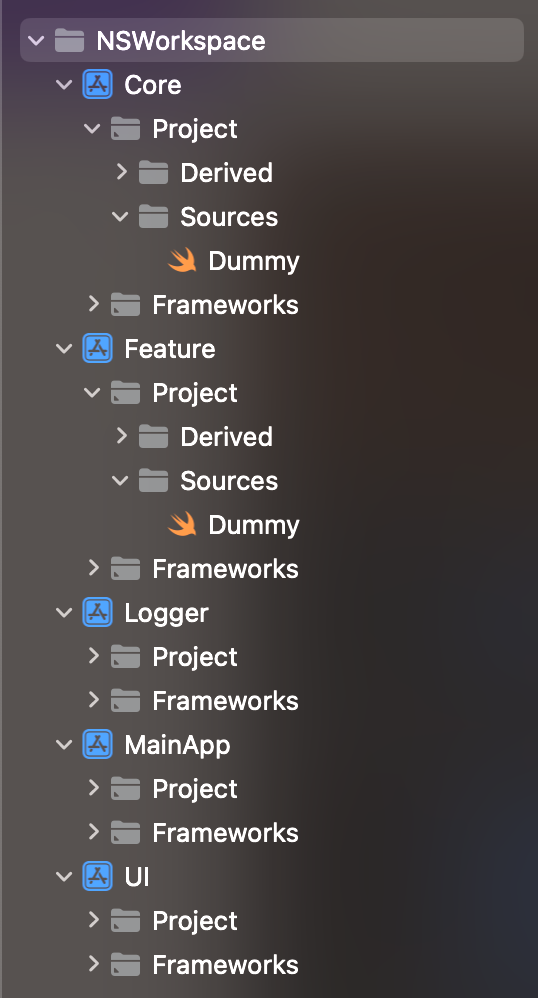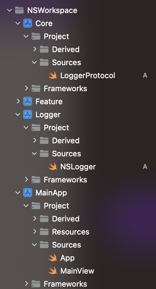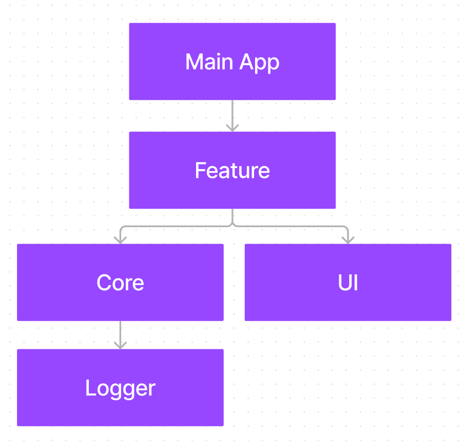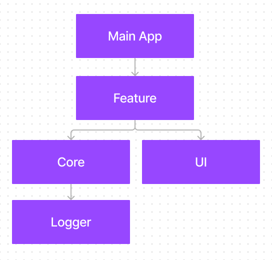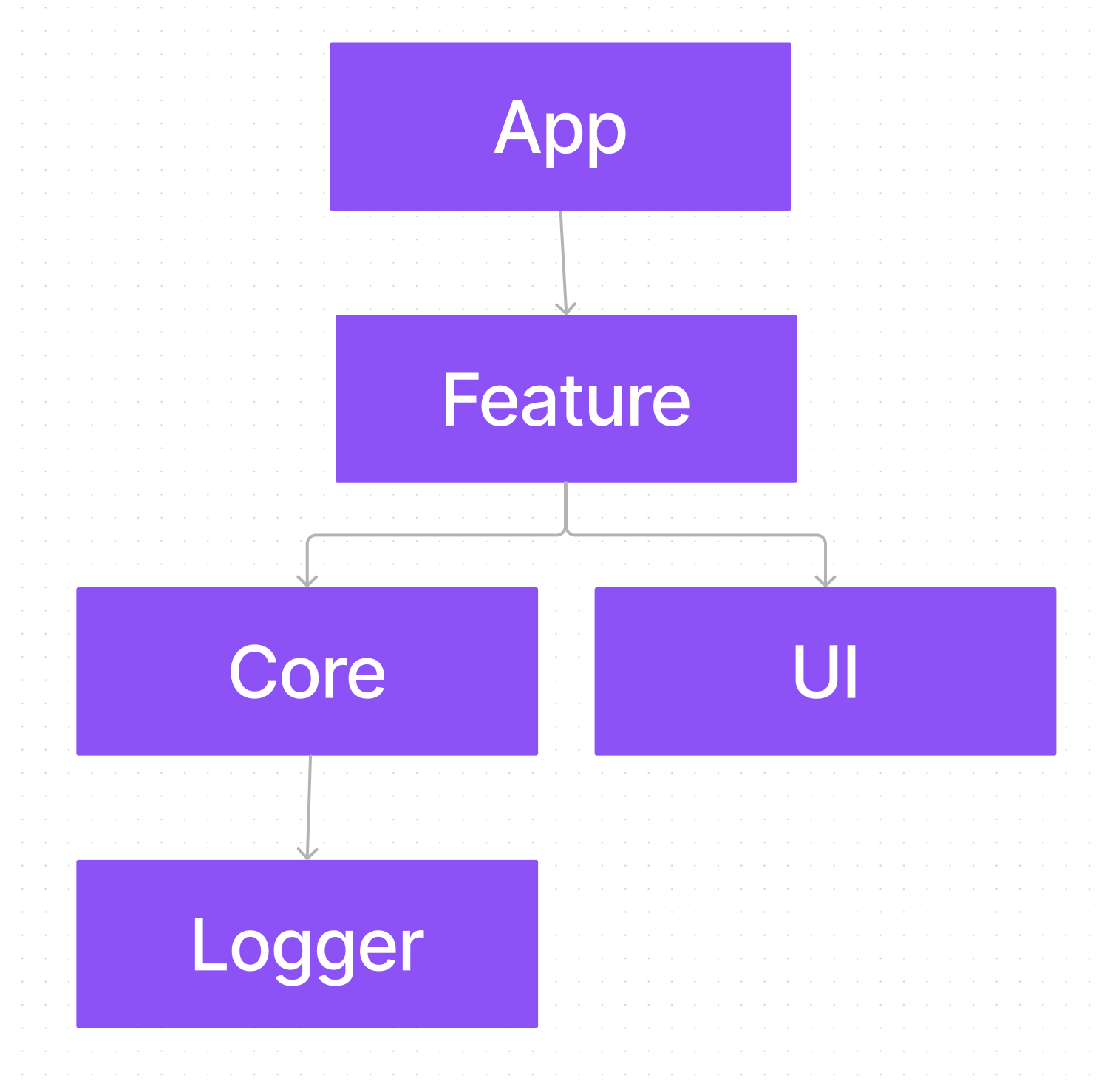 위에서 정의하려는 App, Feature, UI, Core, Logger