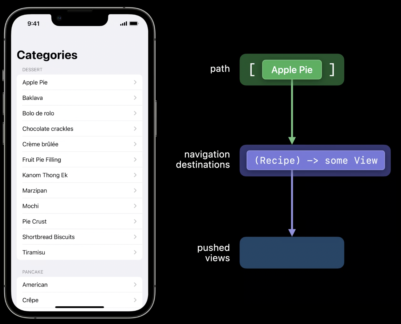 스택은 경로값에 대상을 매핑하여 스택에서 푸시할 뷰를 결정합니다