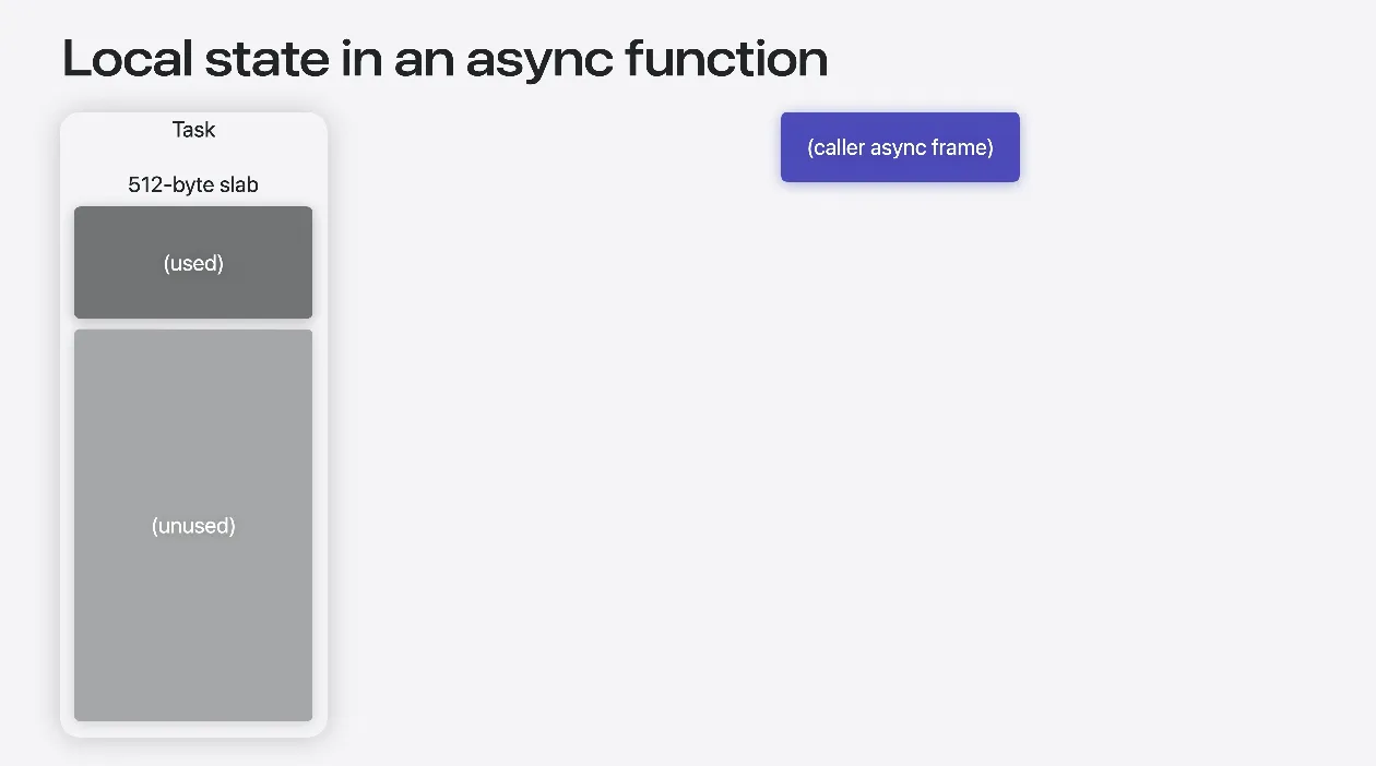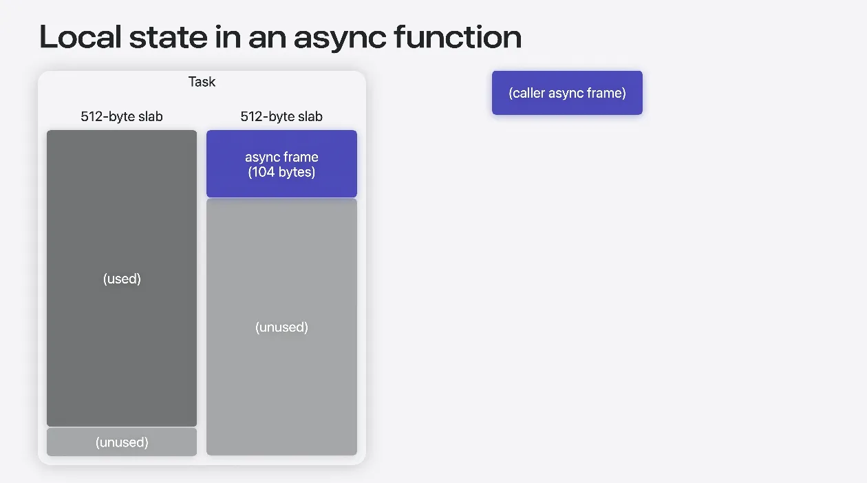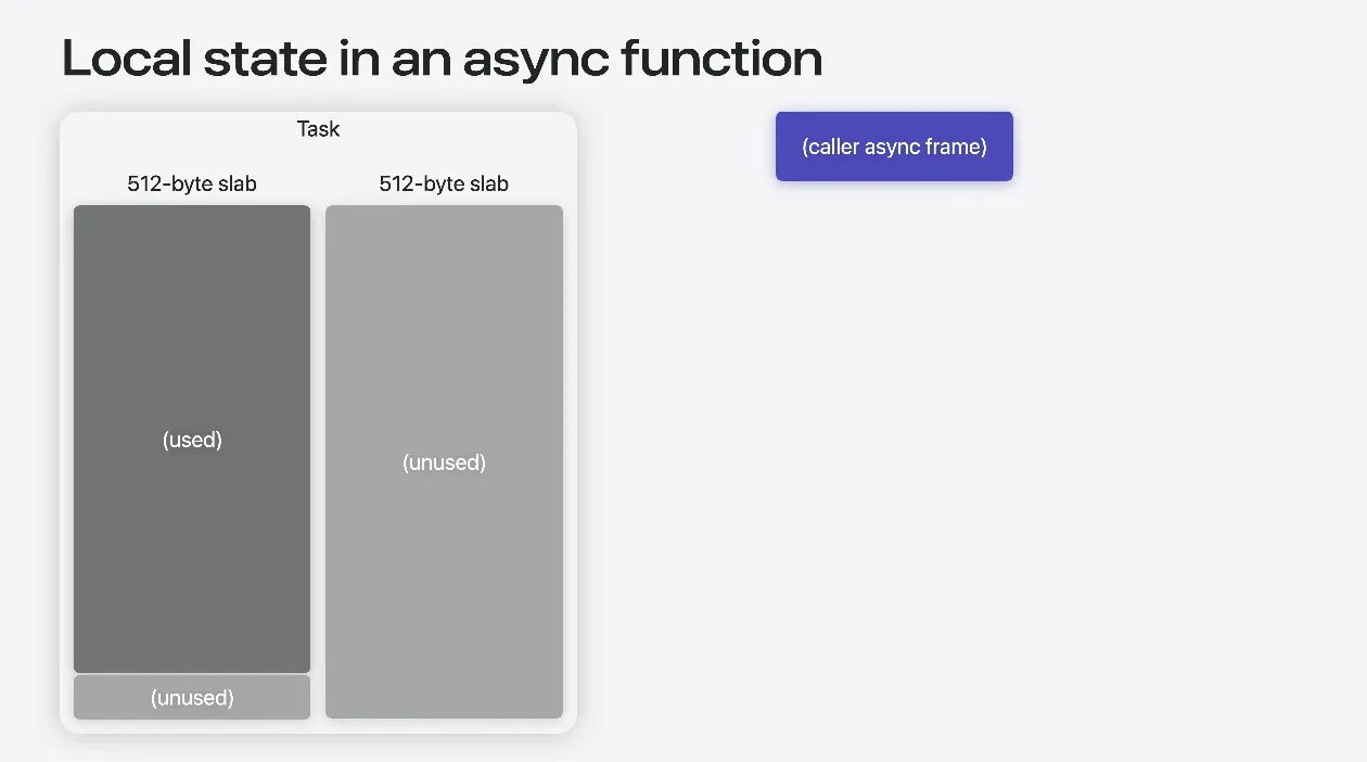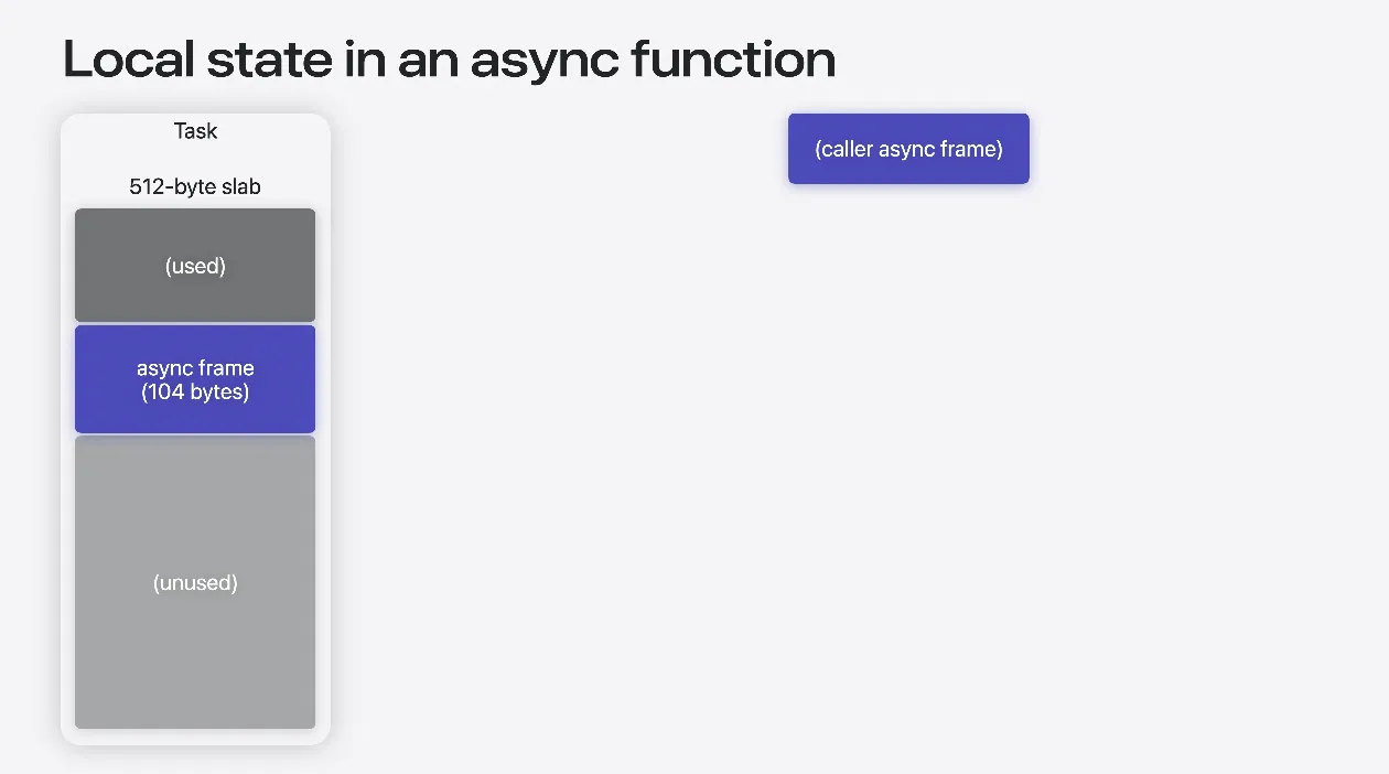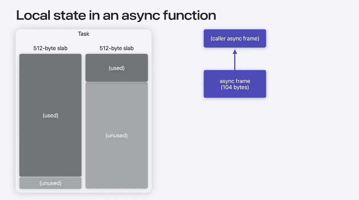 비동기 함수도 개념적으로 동일하게 작동하지만 크고 연속적인 스택 공간을 할당하지는 않습니다