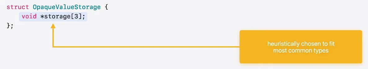 Swift는 임의 버퍼 크기의 포인터 3개를 사용해 프로토콜 유형에 저장된 값을 해당 버퍼에 넣을 수 있다면 인라인 방식으로 집어 넣습니다