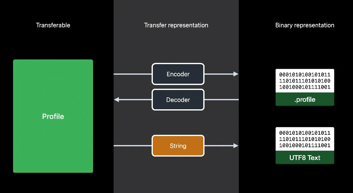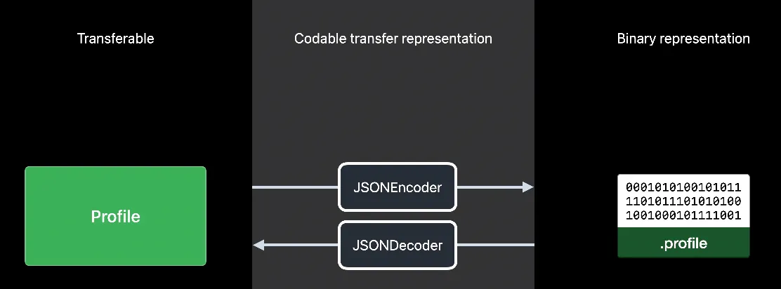 CodableRepresentation은 인코더를 사용해 프로필을 바이너리 데이터로 변환하며 디코더로 원래대로 재변환합니다