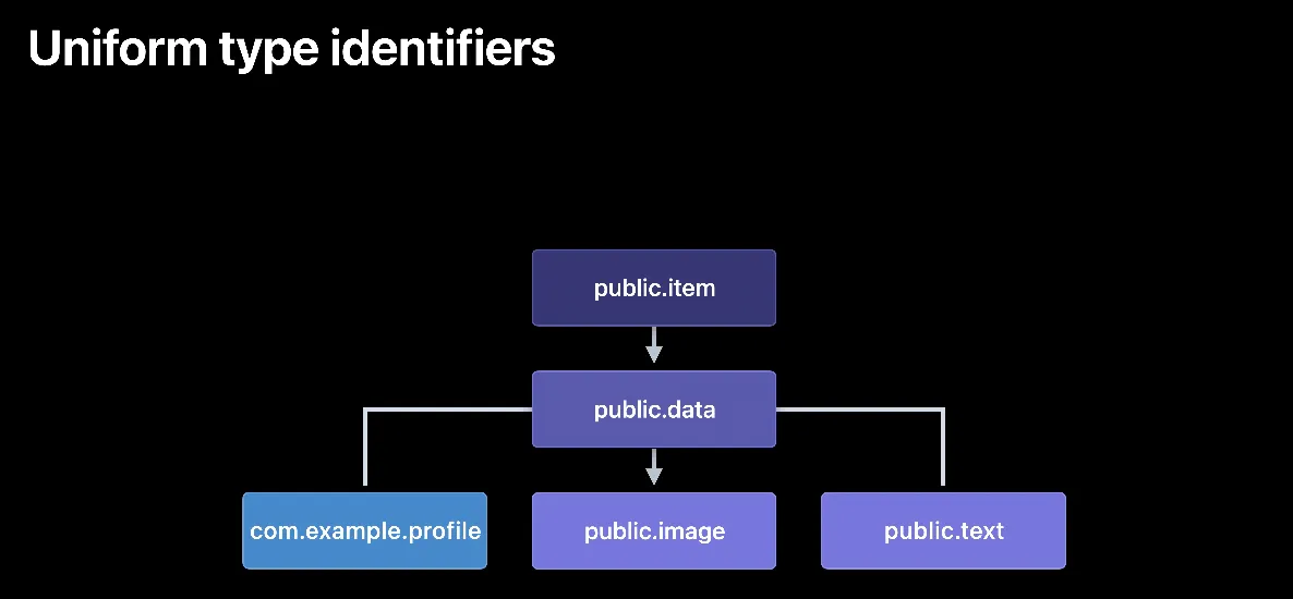 콘텐츠 타입 또는 uniform 타입 식별자로 알려진 이것은 다른 바이너리 구조와 추상적인 개념의 식별자를 설명하는 Apple 고유의 기술입니다