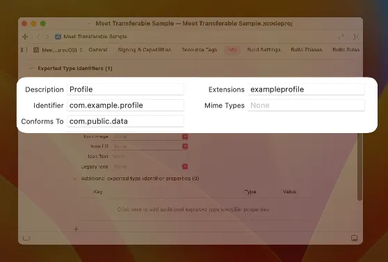 static var profile: UTType = UTType(exportedAs: "com.example.profile")
