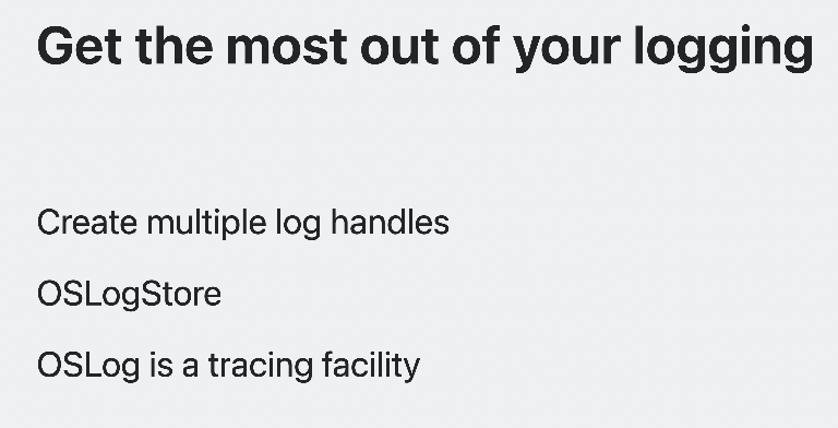 추가 작업 없이 메타데이터를 얻는 더 나은 방법이 필요합니다 OSLog가 바로 그런 기능을 제공