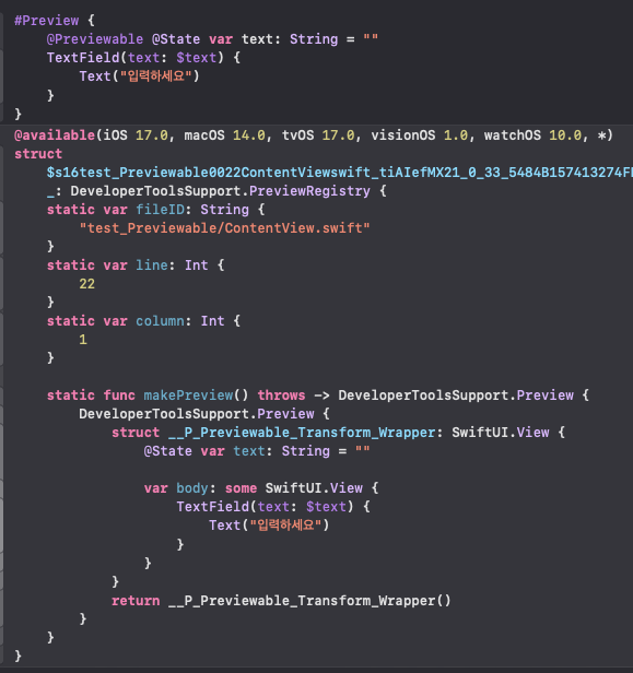 하지만 그 부분을 해결해준게 @Previewable 매크로 입니다