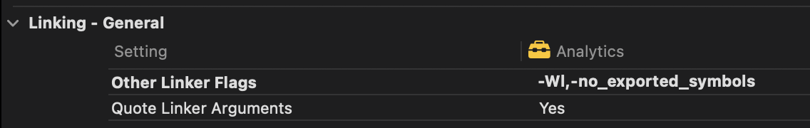 - Xcode는 MERGEABLE_LIBRARY가 활성화되어 있지만 MAKE_MERGEABLE이 아닌 타겟의 직접 종속성을 링커 플래그 -reexport_framework, -reexport-l 등을 사용하여 링크