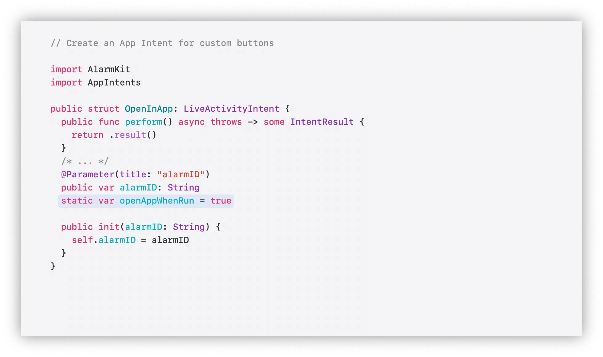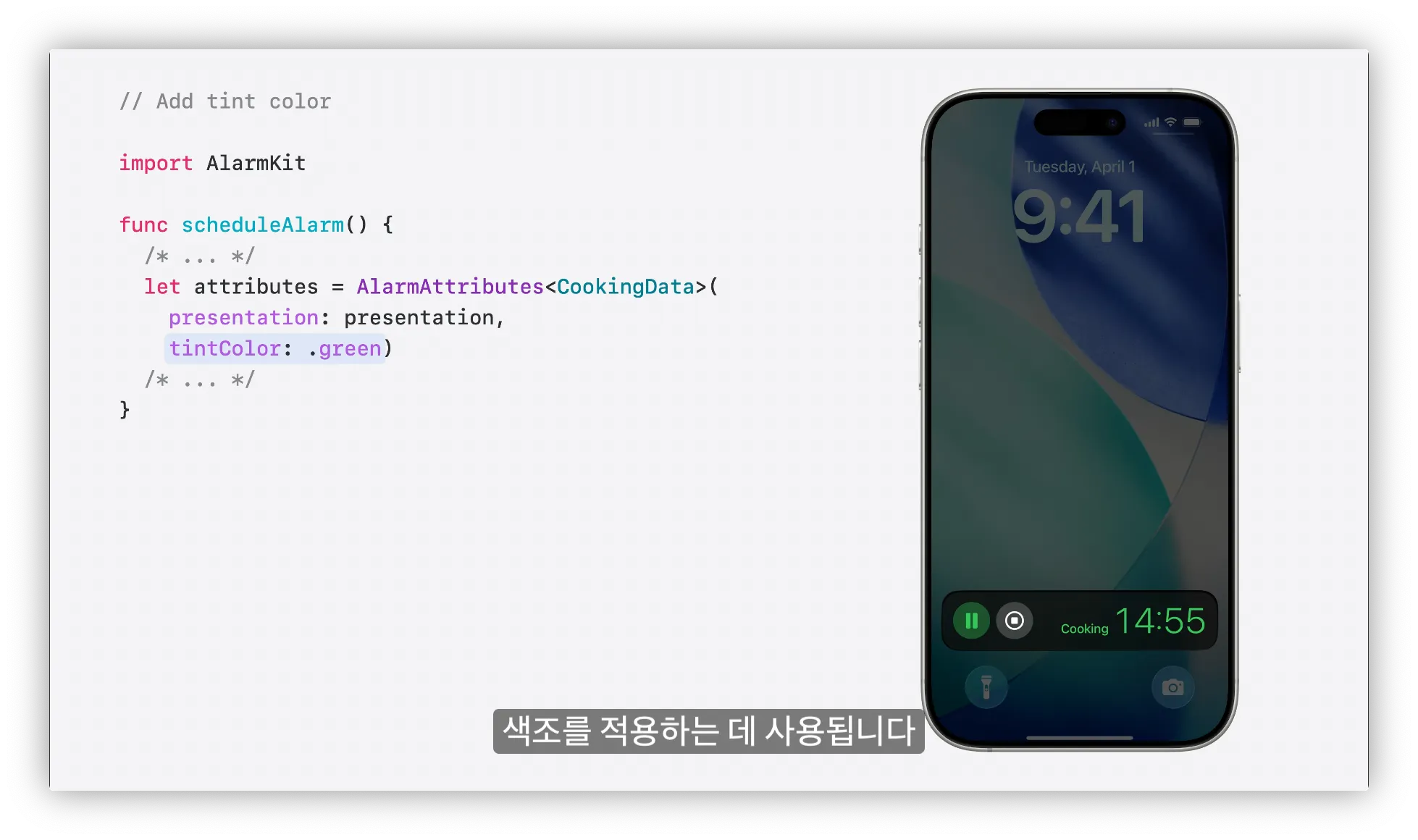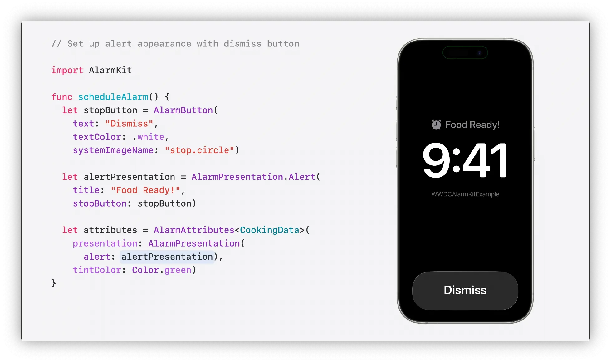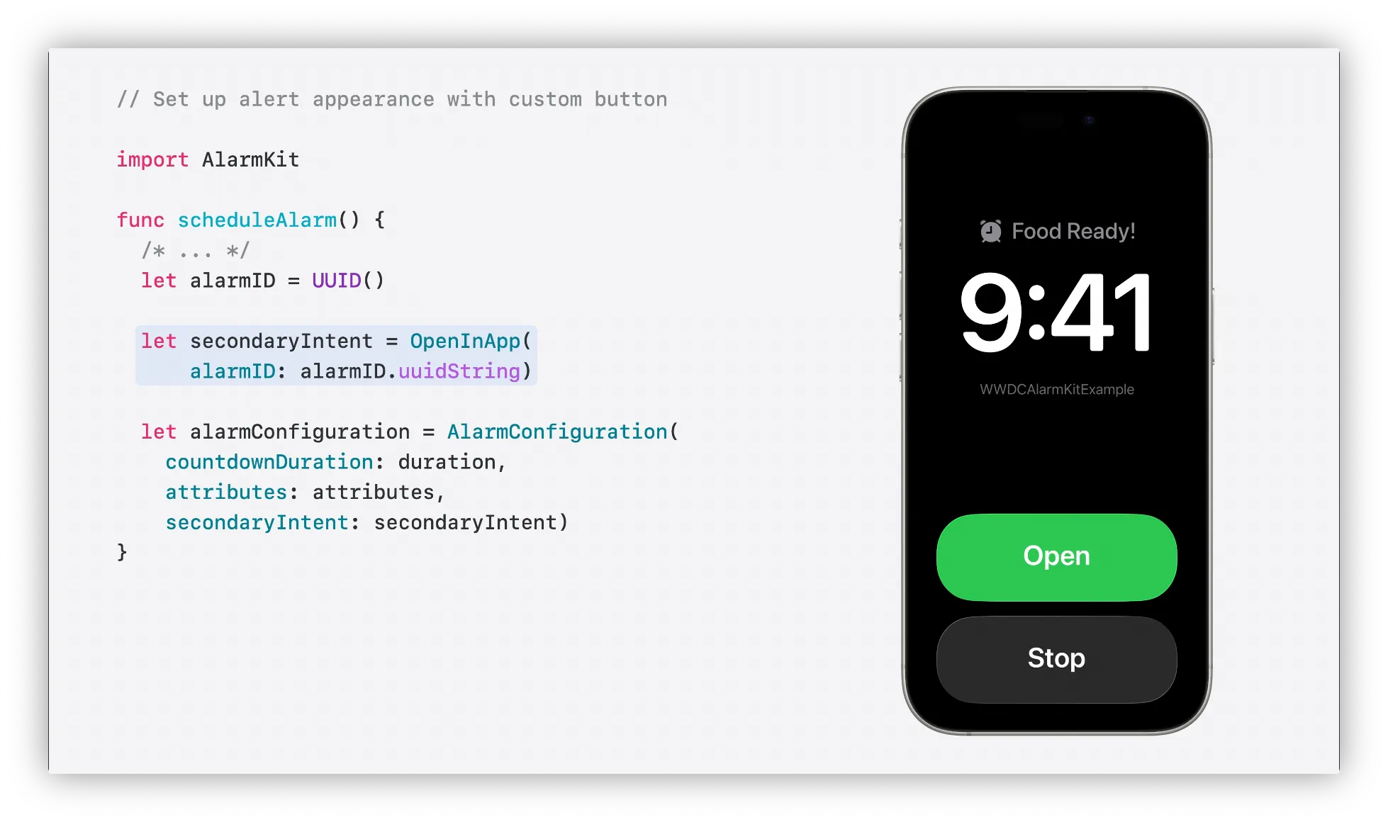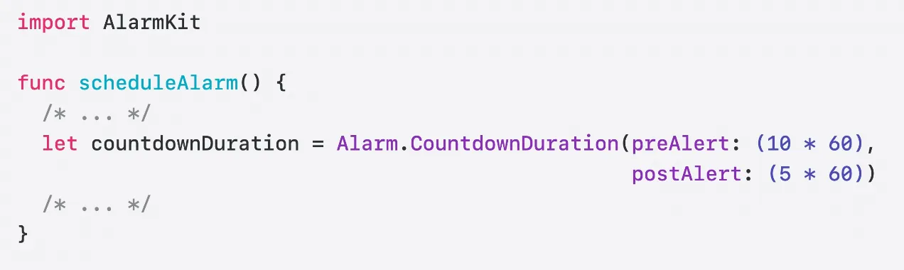 AlarmKit은 사용자가 알람버튼을 탭할때 자체코드를 실행하는 기능도 제공함
