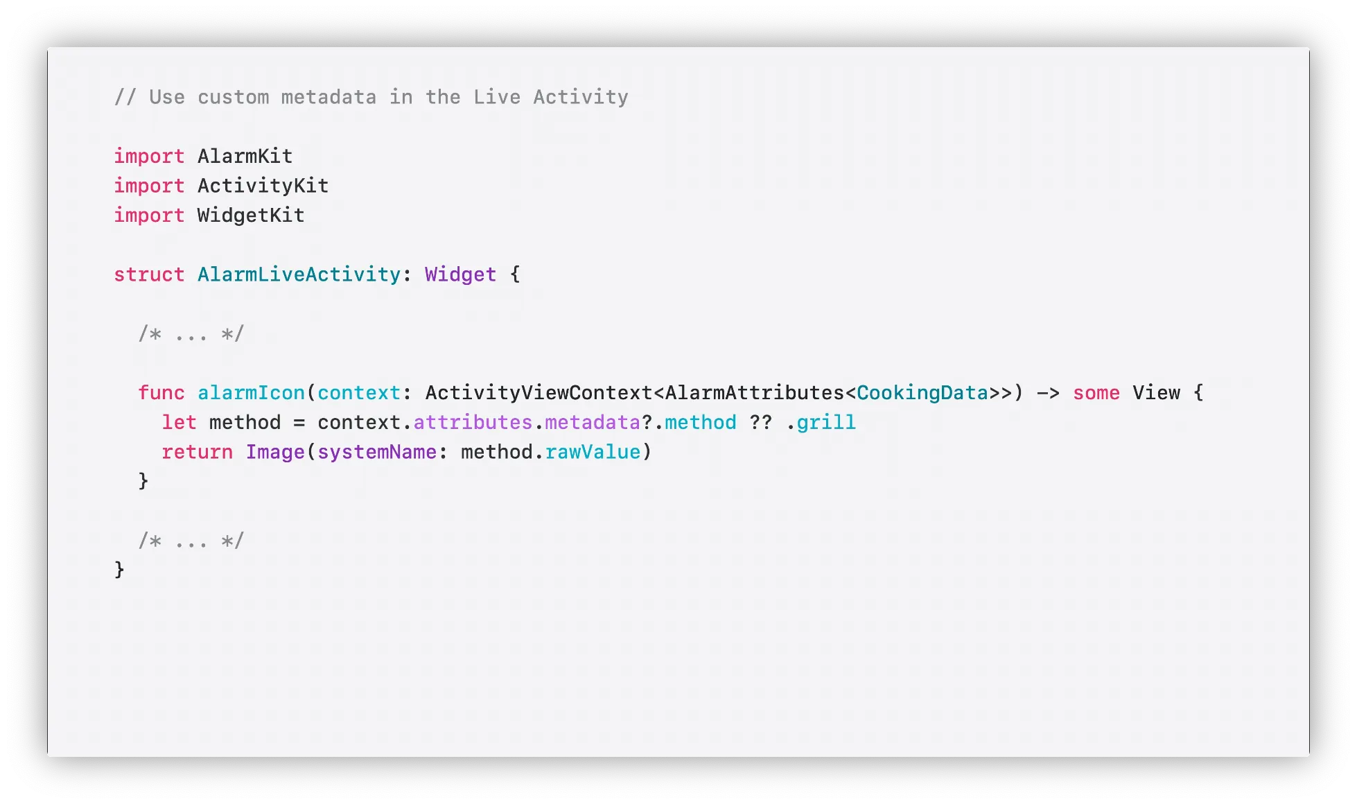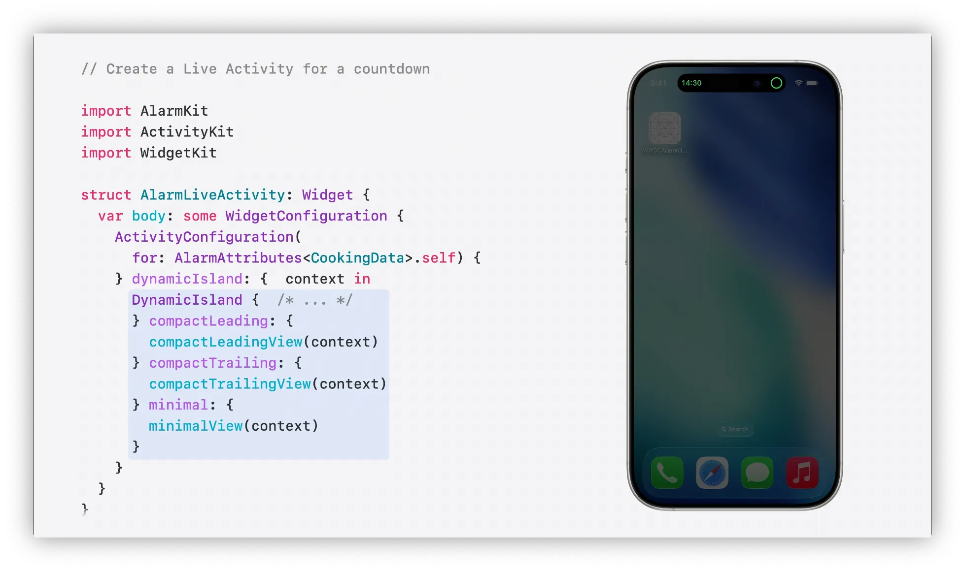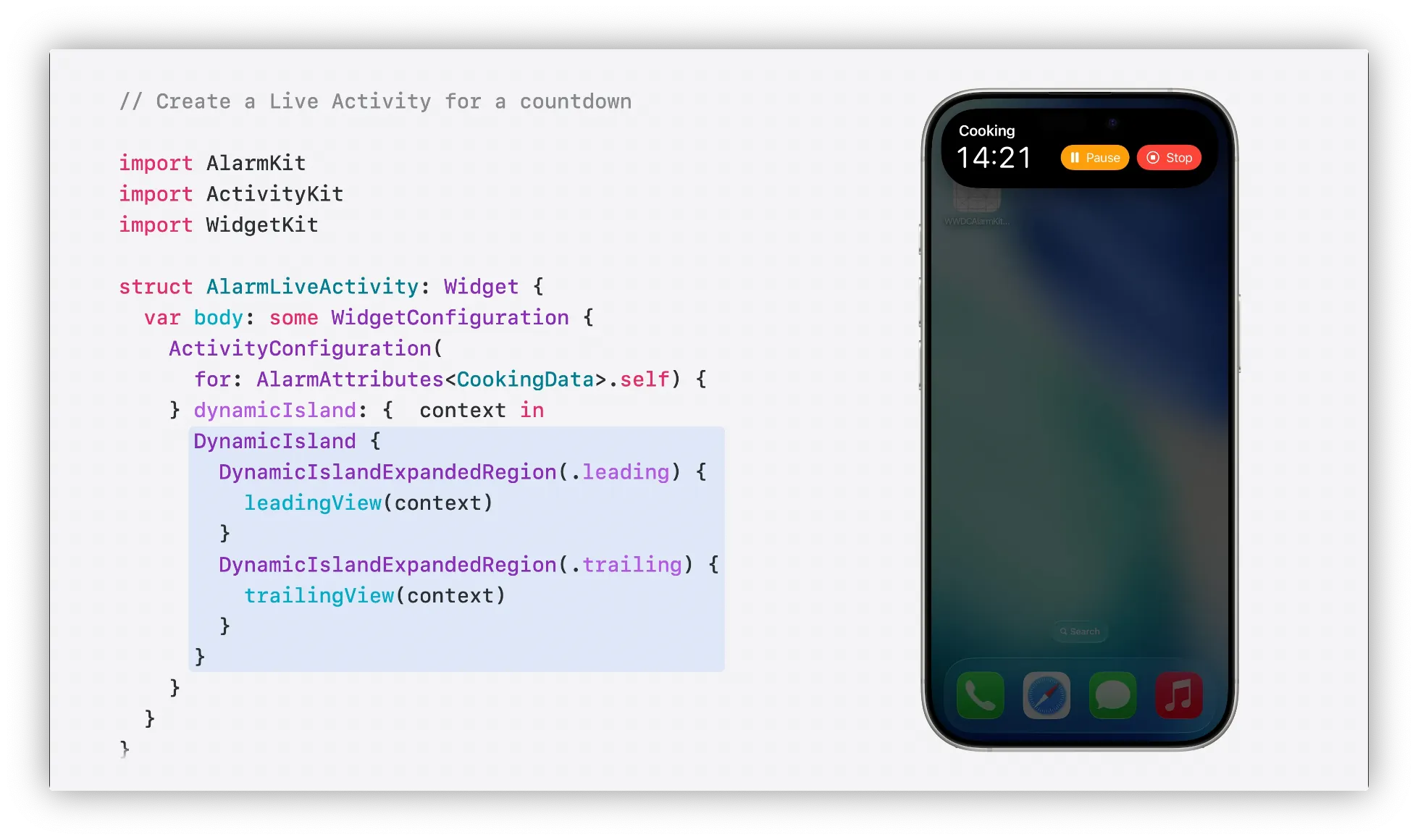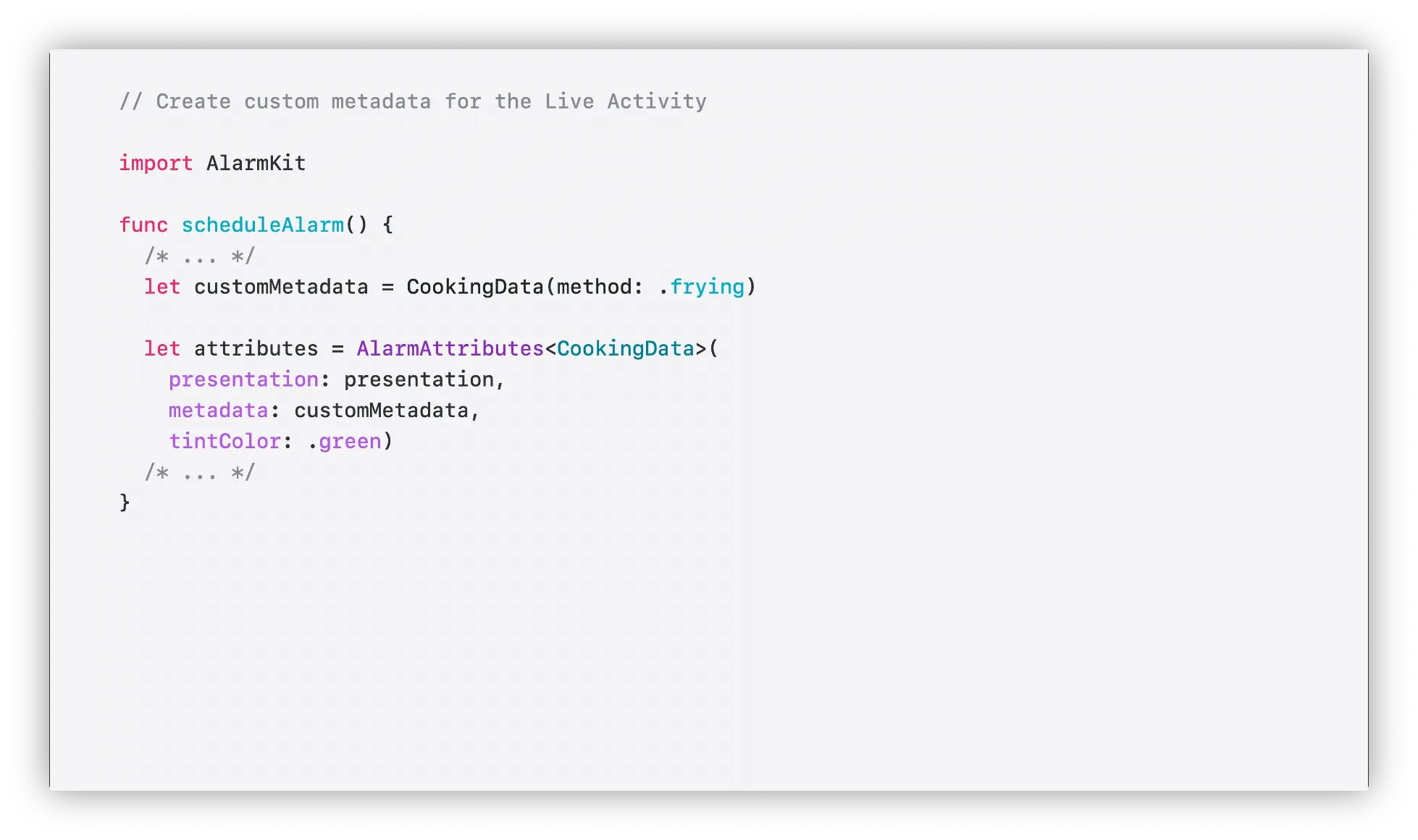 AlarmKit은 사용자가 알람버튼을 탭할때 자체코드를 실행하는 기능도 제공함