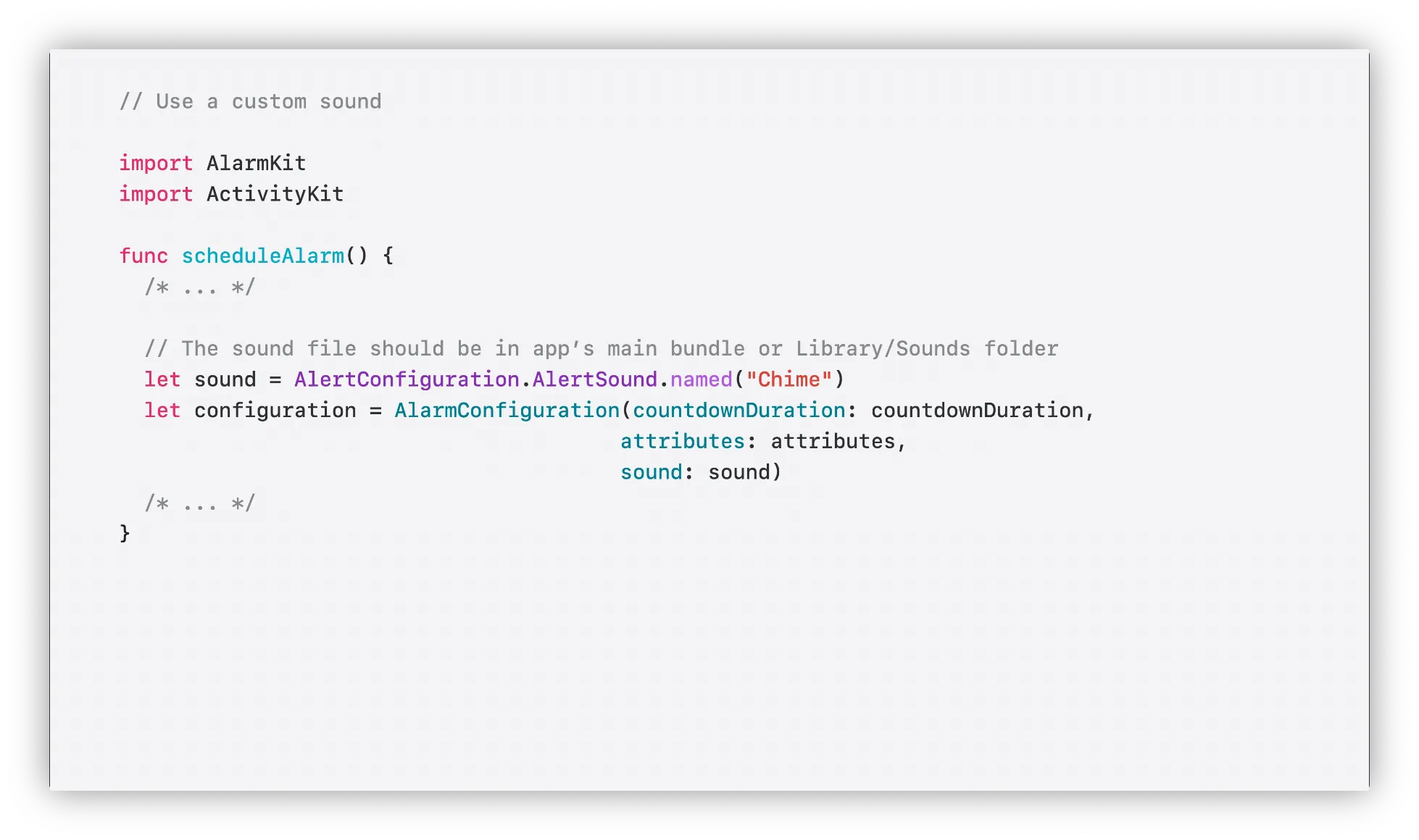 AlertSound구조체를 사용해서 커스텀 소리를 정의할 수 있습니다.