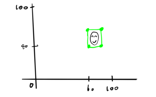 세로는 0.4지점 40부터 세로길이 0.2인 20에 얼굴이 인식됬습니다.