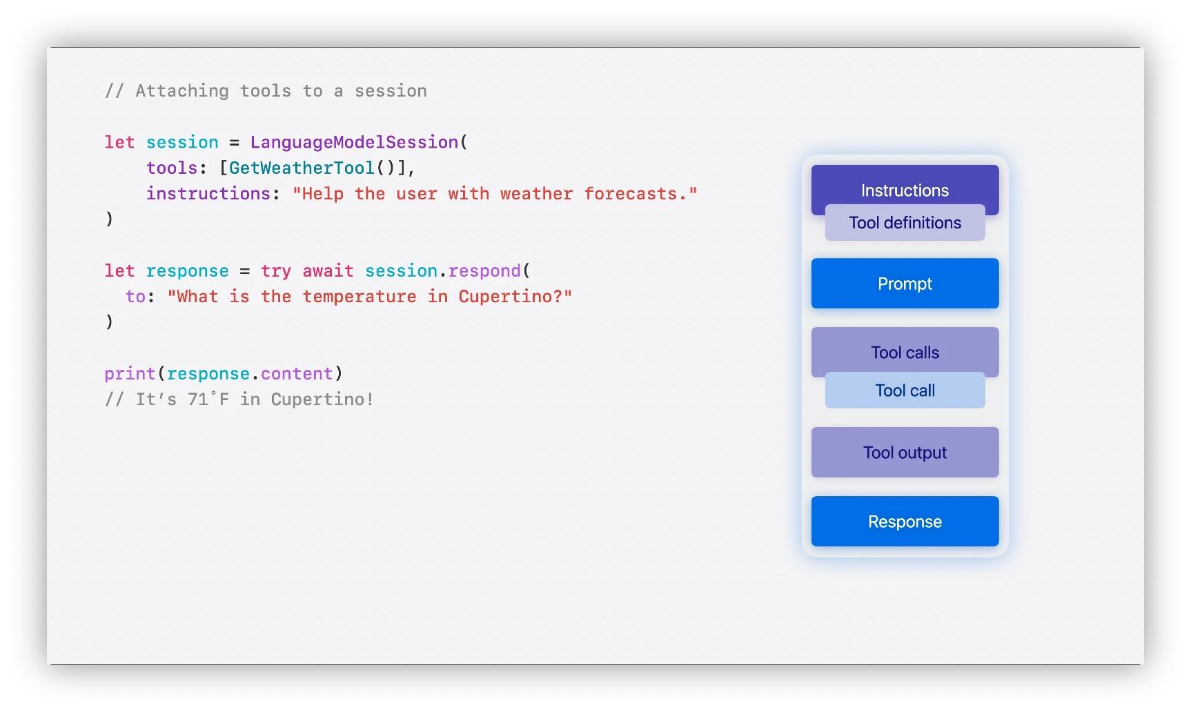 파운데이션 모델 프레임워크는 애플 인텔리전스를 구동하는 애플의 온디바이스 대규모 언어 모델에 대한 접근을 제공하여 사용자의 특정 사용 사례에 맞는 지능형 작업을 수행할 수 있도록 지원합니다.