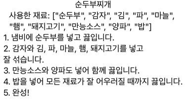 @Guide(description: "조리 단계 목록. get_ingredients 도구로 확인한 재료만 사용")