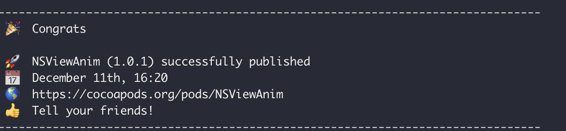 pod repo push [Lib Name] [처음에 만들었던 라이브러리 폴더 안에있는 .podspec경로] --allow-warnings