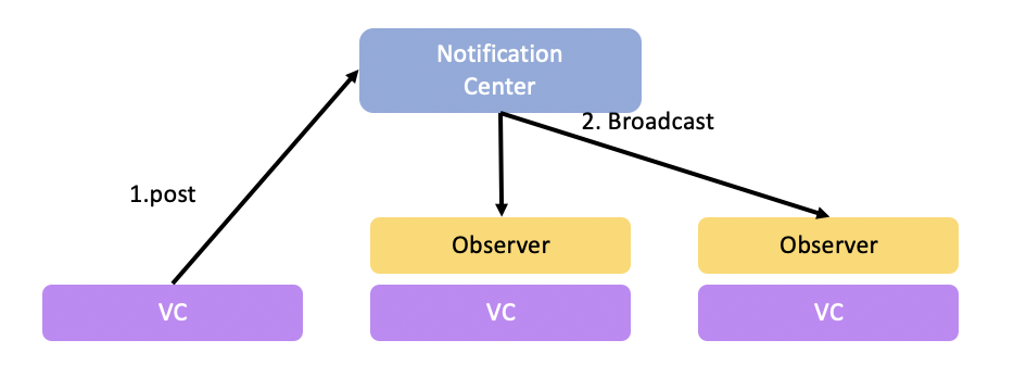 2. Notification Center에서 발생된 이벤트를 등록된 모든 옵저버에 보내고