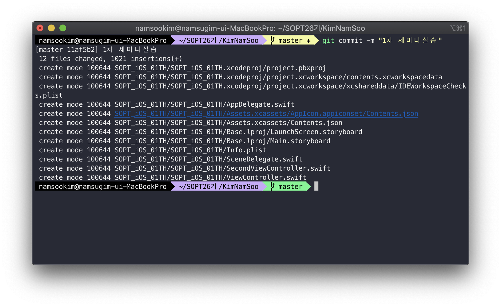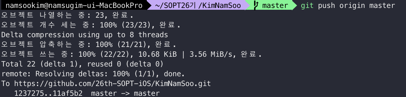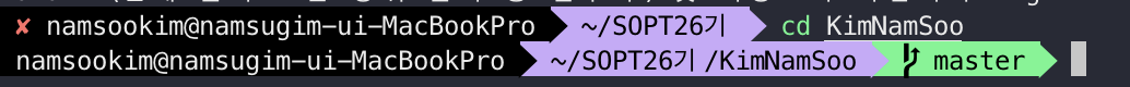 아래처럼 master 표시가 나옵니다 (기본 터미널인경우 안나와요...ㅠ)