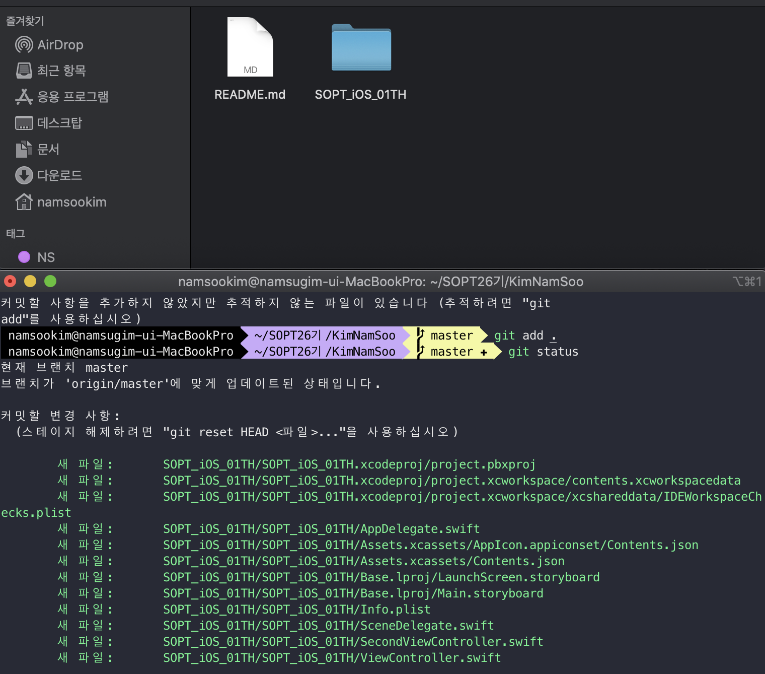자신이 작업할 경로의 폴더와 터미널의 경로가 이렇게 떠있겟죠??