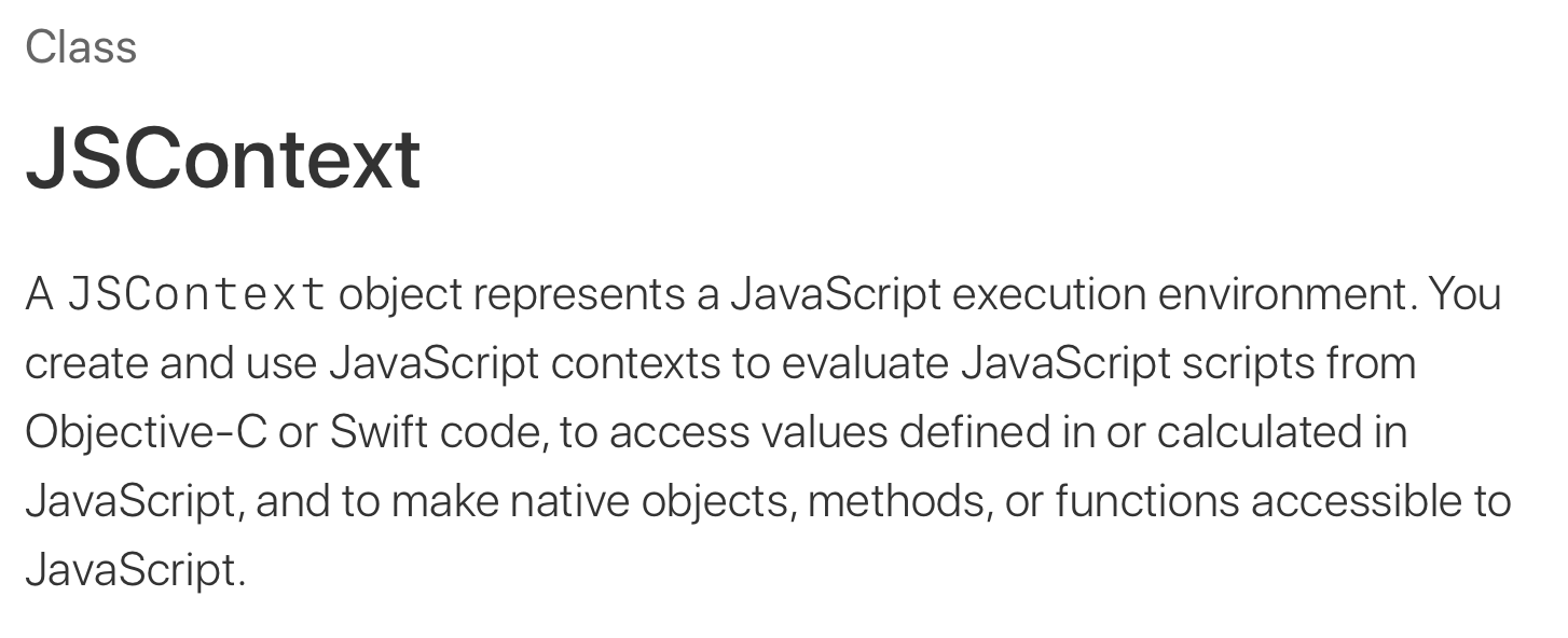 JSContext.setObject(넣을 타입, forKeyedSubscript: 스크립트코드내에서 사용할 타입명)