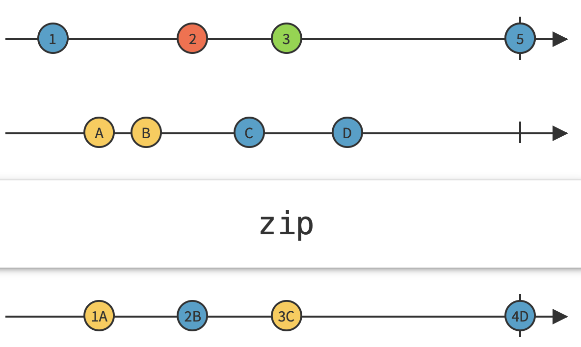 Zip은 모든스트림의 이벤트횟수가같아야 생성이되니까
