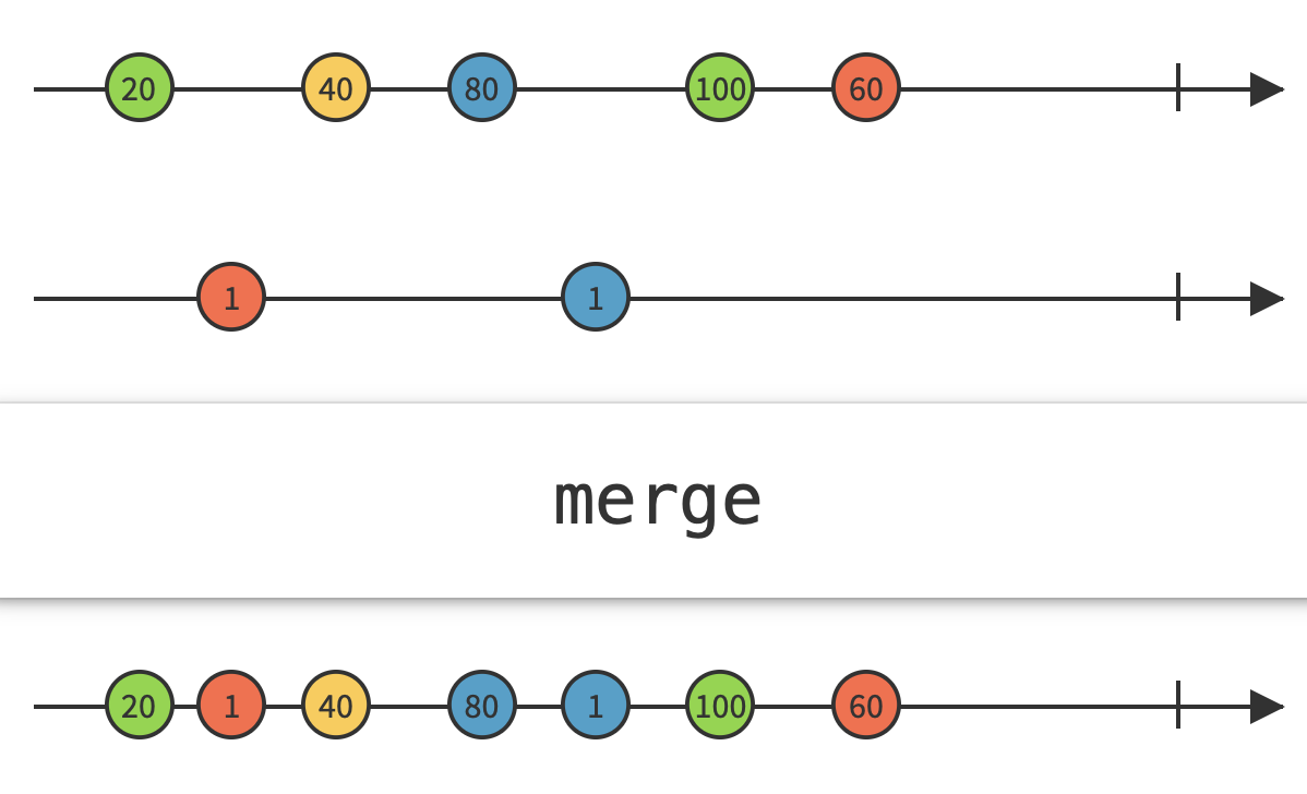 Merge는 단어에서 볼 수 있듯이 두개의 스트림을 합쳐주는 연산자에요