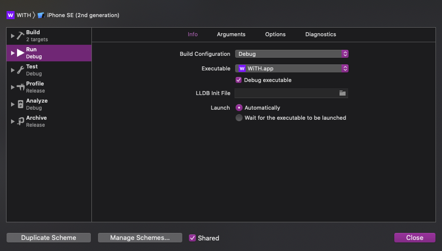 우선 xcode 디폴트로 debug용 앱이 설치가 돼요