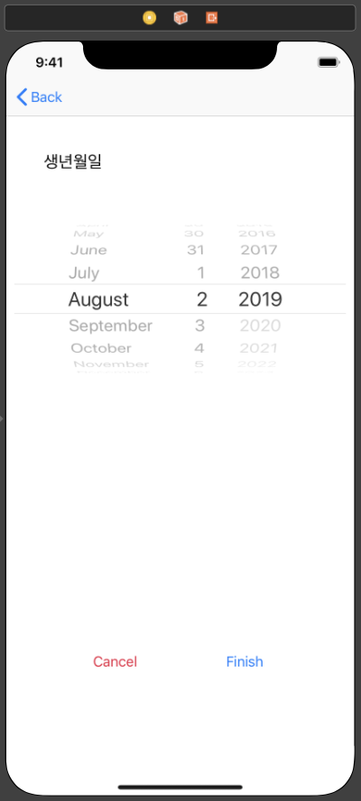 datePicker에서 날짜를 선택하고 finish를 누르면 싱글톤 객체에 저장되요