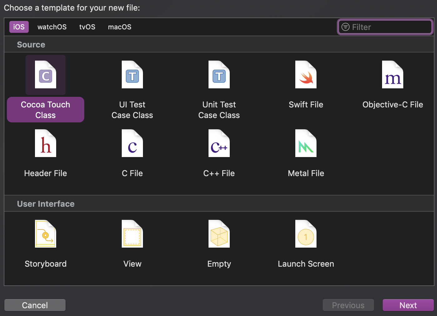 저처럼 헤매시지 마시고 보통 만들듯이!! Cocoa Touch Class를 클릭하세요
